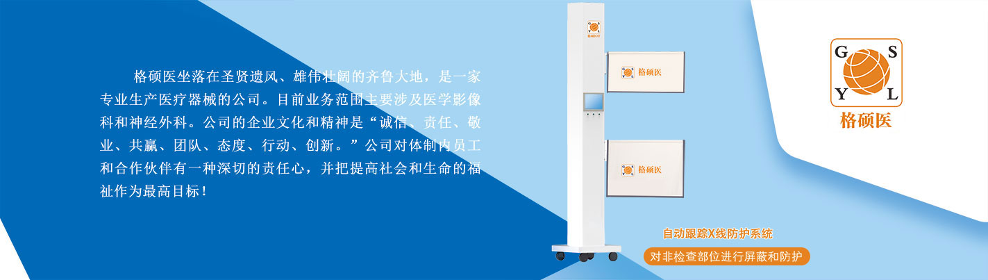 格碩醫坐落在圣賢遺風、雄偉壯闊的齊魯大地,是一家專業生產醫療器械的公司。目前業務范圍主要涉及醫學影像科和神經外科。公司的企業文化和精神是"誠信、責任、敬業、共贏 、團隊、態度、行動、創新。"公司對體制內員工和合作伙伴有一種深切的責任心,并把提高社會和生命的福祉作為最高目標!